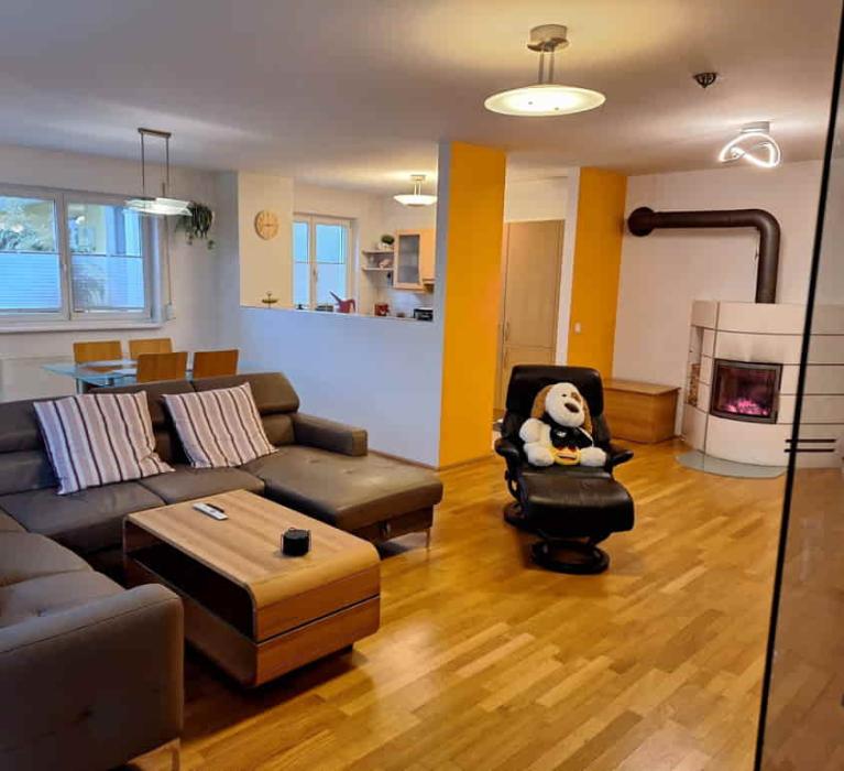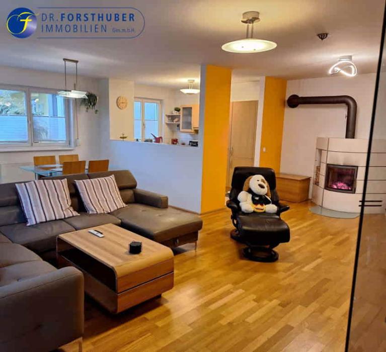 Die Ausstattung: hochwertige Parkettböden, EWE Einbauküche und ein verglaster Wandkamin als stilvoller Blickfang. Beheizt wird mittels Fernwärme. Für Komfort im Alltag sorgt die automatische Gartenbewässerung. Zusätzlicher Stauraum steht im Kellerabteil sowie im eigenen Weinkellerabteil zur Verfügung – beides bequem per Lift erreichbar. Diese Kombination aus Wohnkomfort und Gartenfläche macht das Objekt besonders attraktiv.