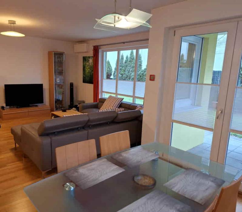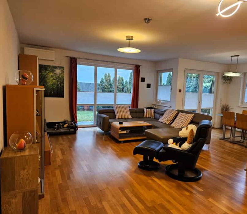 Diese hochwertige Eigentumswohnung im Erdgeschoss liegt in einem modernen Mehrparteienhaus mit insgesamt 12 Eigentümern und überzeugt durch die seltene Verbindung aus großzügiger Wohnfläche und privatem Garten. Auf ca. 112 m² (4 Zimmer + Nebenräume) erwartet Sie ein durchdachter Grundriss, ergänzt durch einen rund 105 m² großen Eigengarten samt südwestlich ausgerichteter Terrasse – perfekt für entspannte Sonnenstunden.