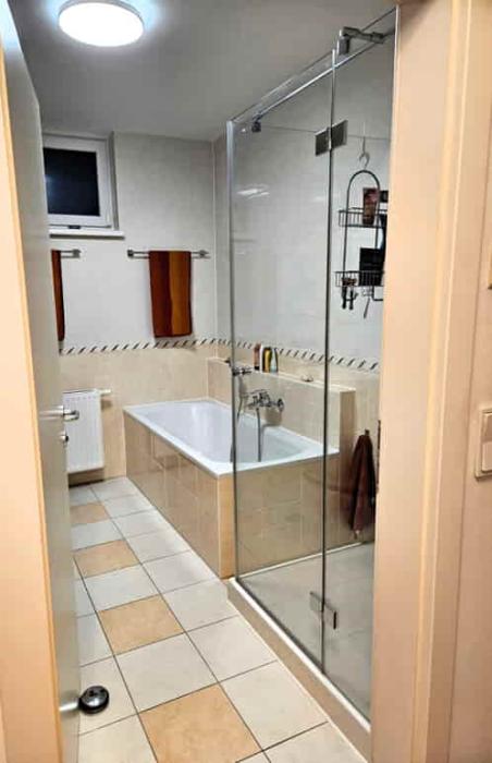 Die Lage: schönes ruhiges Wohnviertel mit Eigentumswohnungen und Villen, 5 Gehminuten zur Bushaltestelle, 7 Gehminuten zum Dobbelhofpark/Rosarium, 7 Gehminuten zum Strandbad, 10 Gehminuten ins Zentrum Baden Rathaus/Pestsäule, Verbindung zum Bahnhof mit Bus ca. 12 Minuten, Verbindung mit Badner Bahn und Bus nach Wien ca. 10 Gehminuten