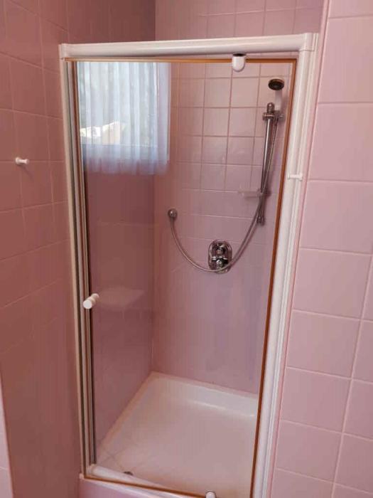 - Badezimmer mit Fenster, Badewanne und Dusche
