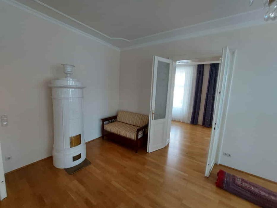- Repräsentativer Wohnsalon mit einem Kachelofen, über diesen Raum gelangt man zum kleinenÂ