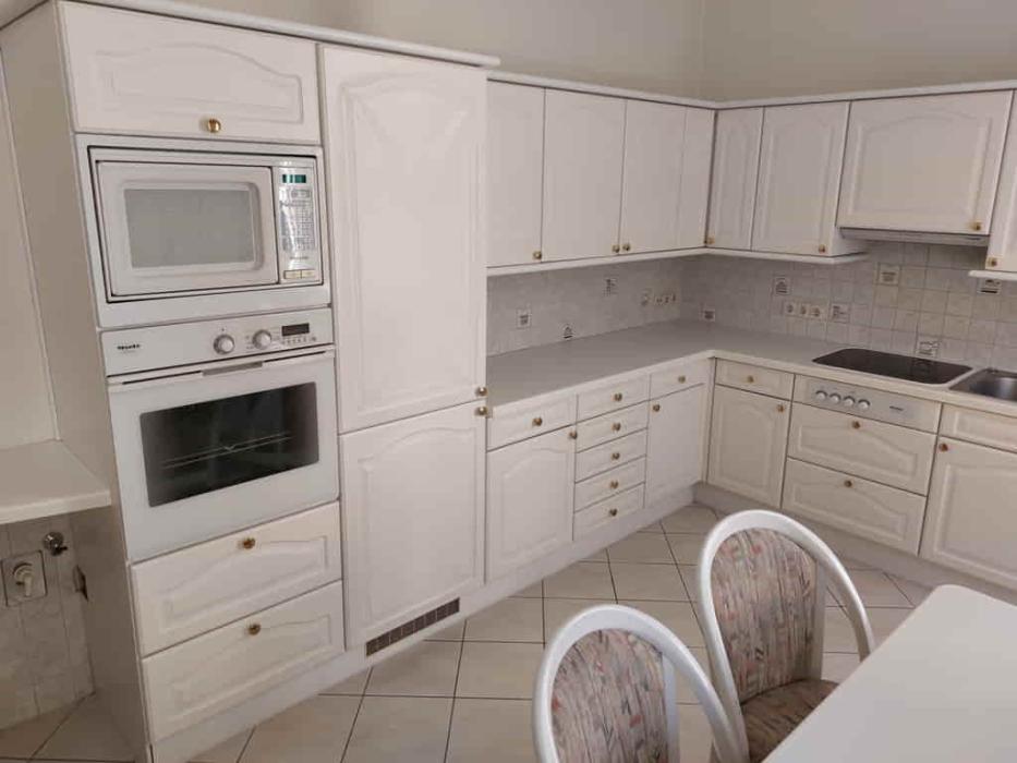 - Lichtdurchflutete Einbauküche mit allen Geräten in hochwertiger Ausführung, mit Essplatz und Abstellraum